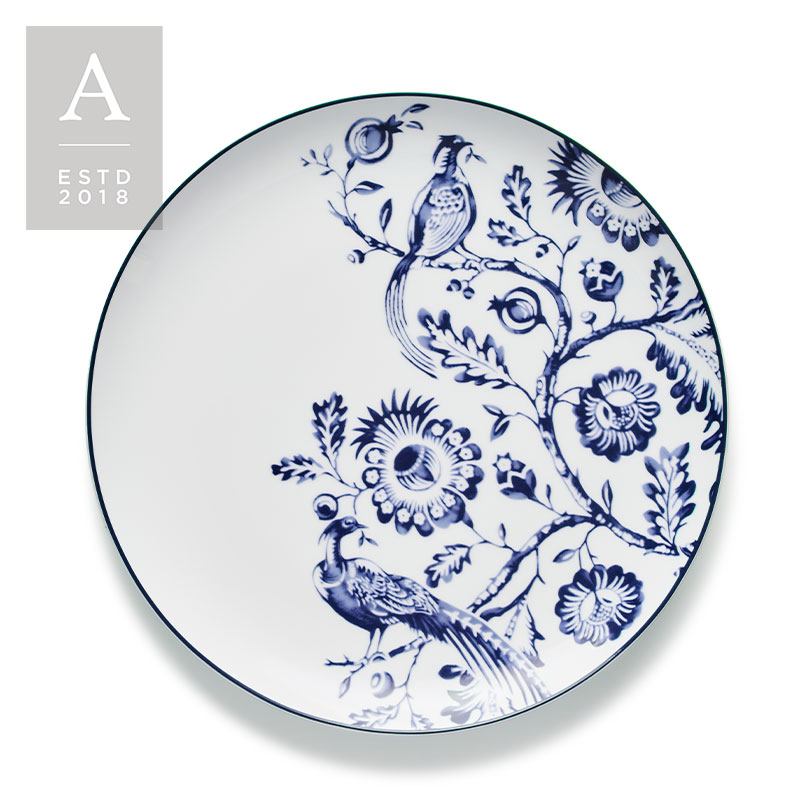 The Charleston Indigo Dishware Collection features a nature-inspired indigo floral and bird motif on a crisp white background. With detailed botanical patterns and graceful avian illustrations, the design brings a fresh, timeless charm to the table—beautifully blending classic elegance with organic artistry.